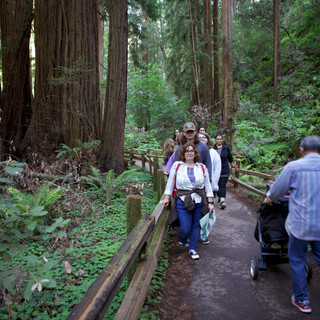 We decided to take it fairly easy for our first together day since we were working on very little sleep. We took a drive across through Point Reyes and down to see Muir Woods, with an easy hike through the California Redwoods. They are absolutely gorgeous. We’ve taken hundreds of pictures, but there is really just no way to transfer how beautiful they are. Old growth redwoods easily top 250-350 feet tall. They have a fire resistant outer layer, so many of them have hollow centers with viable exteriors. Their uppermost foliage are smaller because of the time and effort needed to get water all the way up there. We have an excellent pamphlet with even more fun facts for those who are interested.