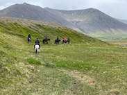 So off we went to the town of Thingeyri. Thingeyri is one of the oldest settlements in the Westfjords, and where the regional Viking assembly (or “thing”) was held, and the first trading post of the Westfjords was established. We checked in at Simbahollin, zipped to the stable, and then Audrey, Elizabeth, Ryan, and I mounted our noble steeds (Tátá, Cupla, Louie, and Knawa) and proceeded to ride from the “Valley to Sea”. And we literally rode through the valley and to the sea and back. And we did the tölt. A lot of tölt. It was a gorgeous route, but generic tack makes for an uncomfortable ride, and there was a decided lack of communication about what was happening. Could have been great with just a little communication. Wasn’t for us occasional riders (especially Ryan at over 6’ who was extremely uncomfortable). I’m not sure, but if Tátá doesn’t mean turtle, it should. She was slow and steady, but we stayed way behind everyone else the whole trip. Audrey, as expected, figured out the tölt and cantered across the last field and hill.