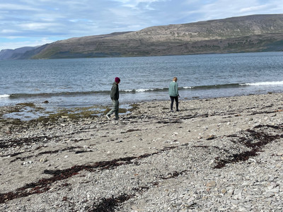 In order to ensure we made our ferry, Melissa put us at the furthest most point first. Then we back-tracked to see the other things she had planned. The next stop was Breidavik with another golden sand beach. She it trying to see all the differently colored, and named, beaches. We have seen black sand, and diamond beach. Gillian and I saw golden sand beaches while everyone else was riding horses. So, this was the time for the whole family to get gold. The best place to stop was a little hotel and café since there was only a short walk to the beach. With the tally at 3, we only have one more color to go…